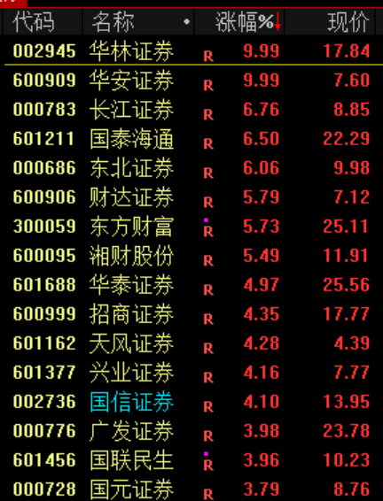 券商、保险等金融股拉升,华安证券、华林证券涨停。