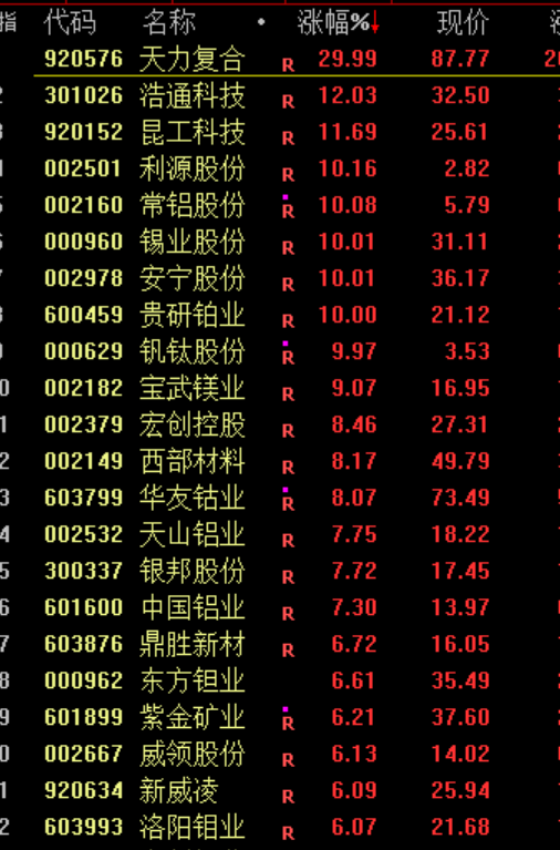 有色板块走强,洛阳钼业、紫金矿业等多股创历史新高。